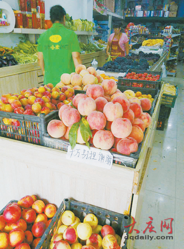 东北网8月12日讯 8月1日,记者在东湖小区一家果蔬店里看到,老板张女士在待售的一筐桃子前贴了张字条,写着“千万别捏”的字样。提及这个字条,张女士有一肚子话要说。她说,经营果蔬店几年来,被顾客捏坏的水果不计其数,最终才想到了这个办法,提醒顾客在挑选水果时“手下留情”。