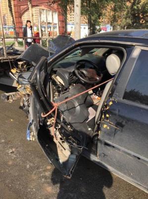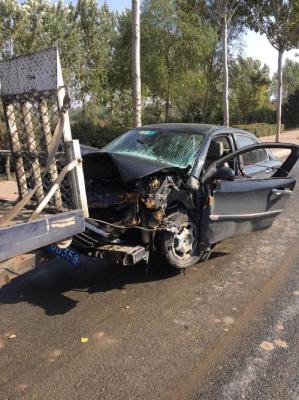 哈尔滨一赛豹轿车撞向翻斗车 一死一重伤