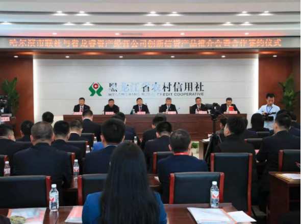 2021年4月27日上午,黑龙江省龙睿资产经营有限公司(以下简称“龙睿公司”)、黑龙江省创新农业物权融资有限公司(以下简称“创新物权公司”)共同携手哈尔滨市农村信用合作社联合社(以下简称“哈尔滨市联社”)在哈尔滨市双城区成功举行信贷产品推介会暨合作签约仪式。双方围绕如何落实国家乡村振兴战略、深化国有企业与金融机构交流合作进行了深入沟通。龙睿公司党委书记、董事长郐晓龙与哈尔滨市联社党组书记、理事长姚杰出席会议并致辞。