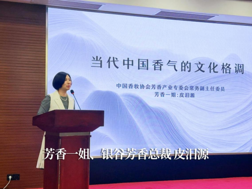 银谷芳香总裁、中国香妆协会芳香产业专委会常务副主任委员、芳香一姐皮汨源女士与会期间发表了《当代中国香气的文化格调》主题演讲。